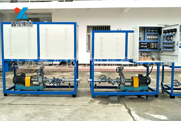 其工作原理:电加热导热油炉是以电为能源,将加热元件直接插入有机载体(导热油)中直接加,利用高温循环泵,强制将高温导热油进行液相循环,将热量传递给用一个或多种用热设备,经用热设备后,重新通过循环泵,回到加热器,再吸收热量,传递给用热设备,如此周而复始,实现热量的连续传递,使被加热物体温度升高,达到加热的工艺要求。